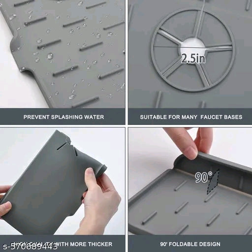 Name: Kitchen Faucet Sink Splash Guard, Water Catcher Mat – Sink Draining Pad Behind Faucet, Grey Rubber Drying Mat for Kitchen & Bathroom Countertop Protect